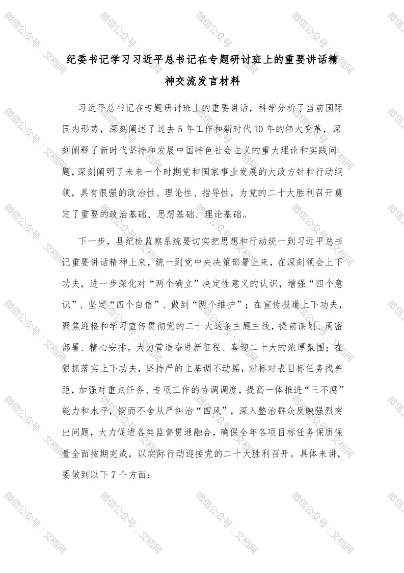 纪委书记学习***总书记在专题研讨班上的重要讲话精神交流发言材料