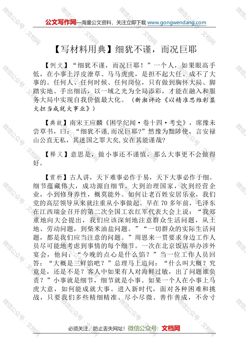 首页每日金句【写材料用典】细犹不谨,而况巨耶