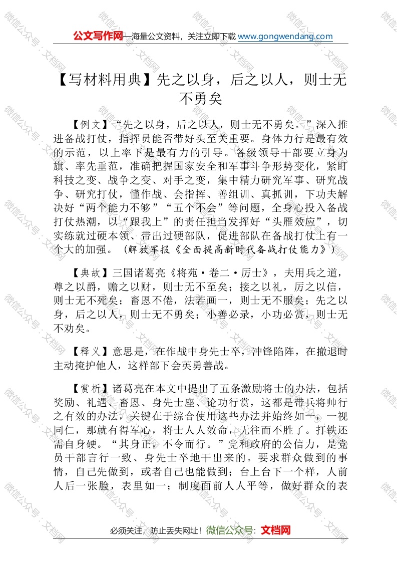 【写材料用典】先之以身,后之以人,则士无不勇矣