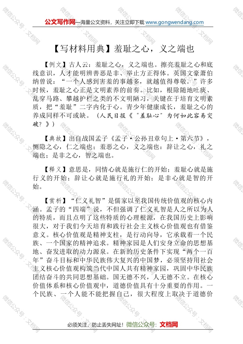 首页每日金句【写材料用典】羞耻之心,义之端也