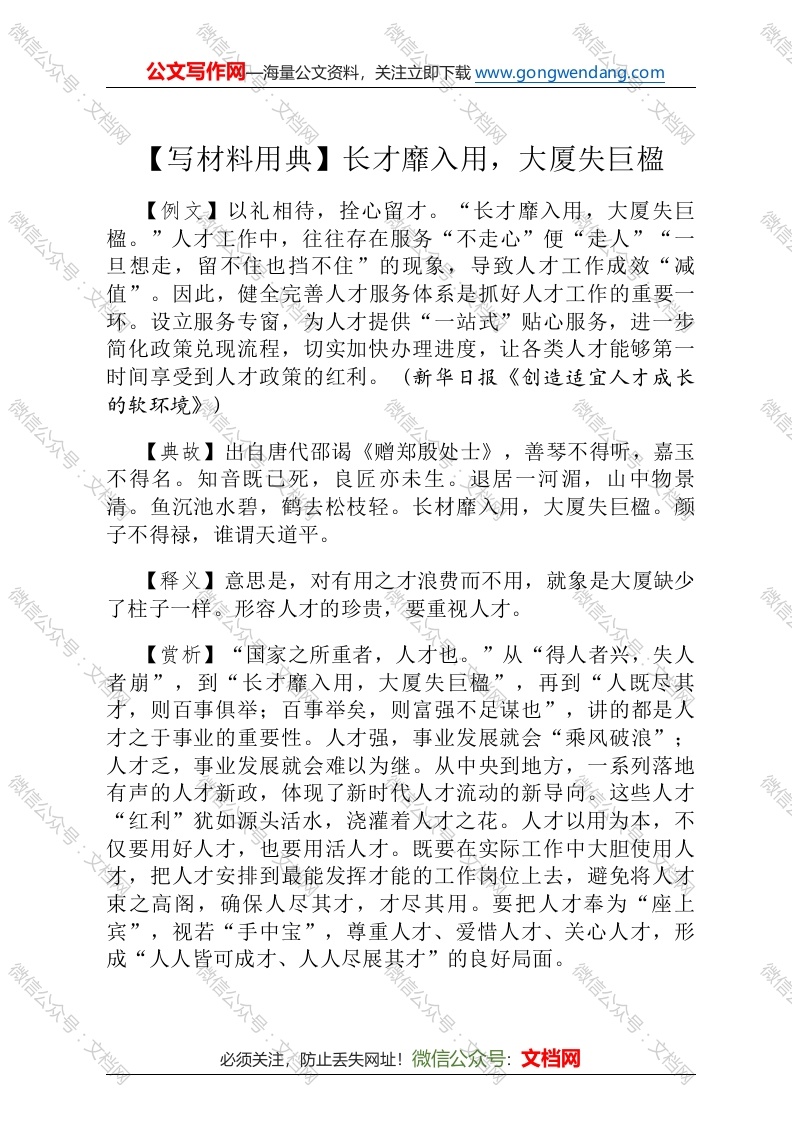 首页每日金句【写材料用典】长才靡入用,大厦失巨楹