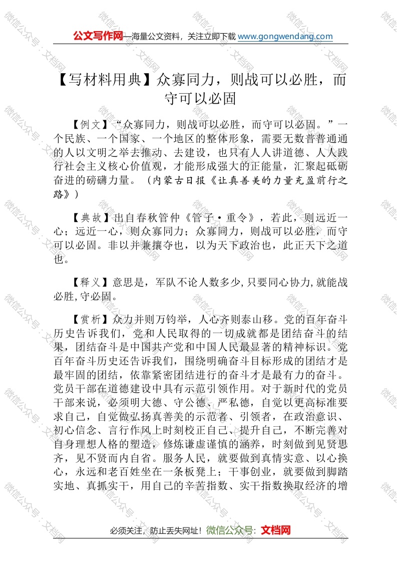 【写材料用典】众寡同力,则战可以必胜,而守可以必固
