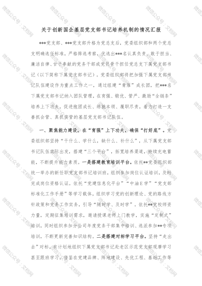 首页讲课讲稿关于创新国企基层党支部书记培养机制的情况汇报