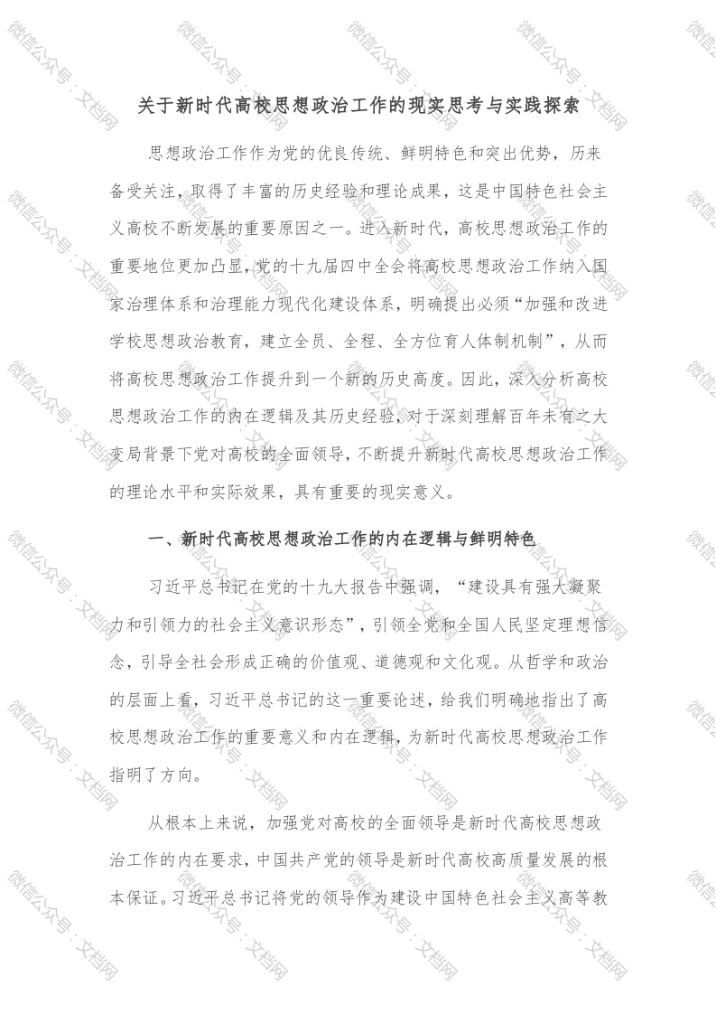 首页讲课讲稿关于新时代高校思想政治工作的现实思考与实践探索