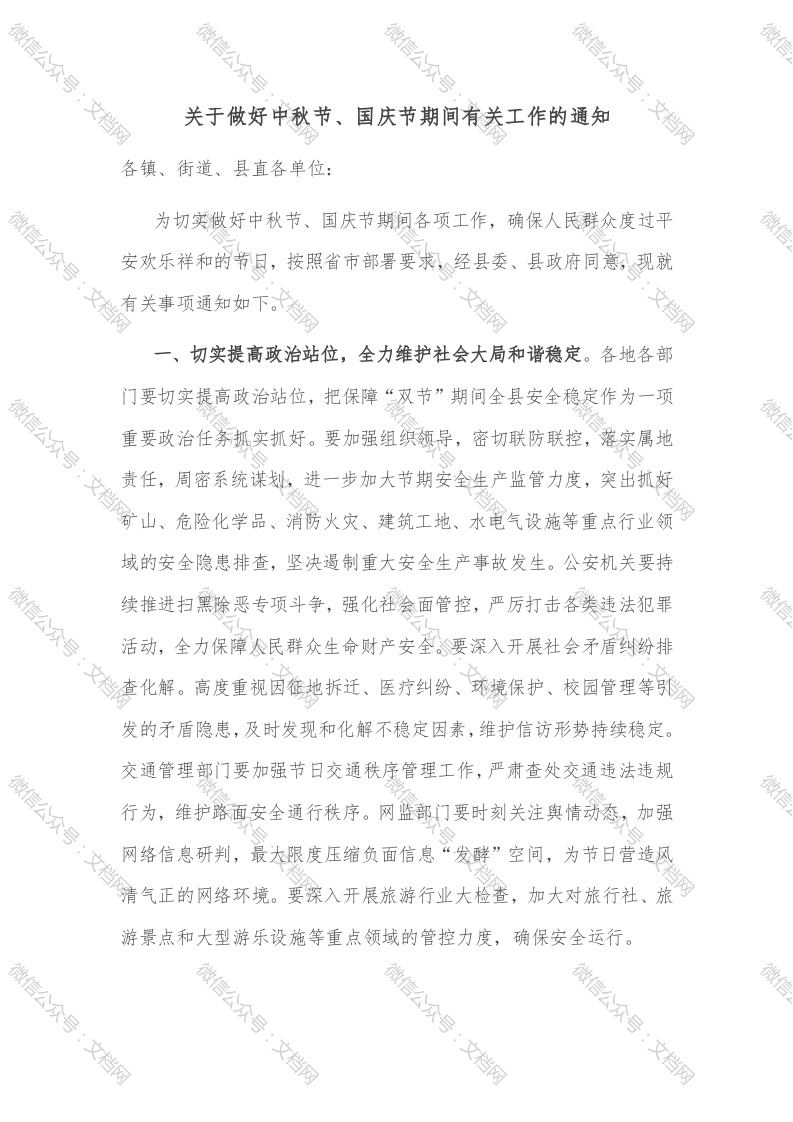 首页讲课讲稿关于做好中秋节、国庆节期间有关工作的通知