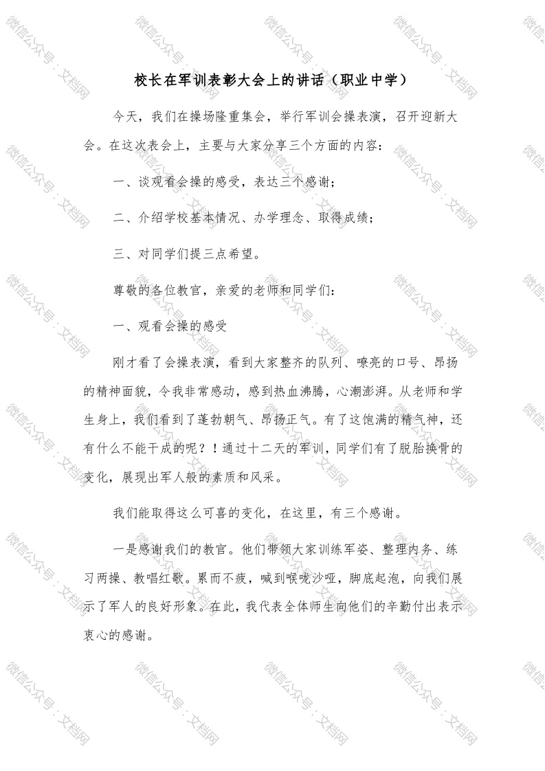 首页讲课讲稿校长在军训表彰大会上的讲话(职业中学)