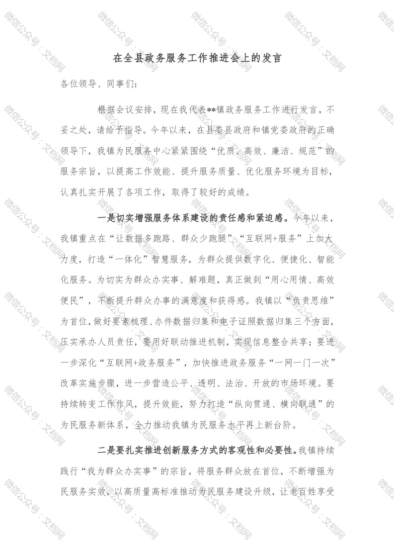首页讲课讲稿在全县政务服务工作推进会上的发言