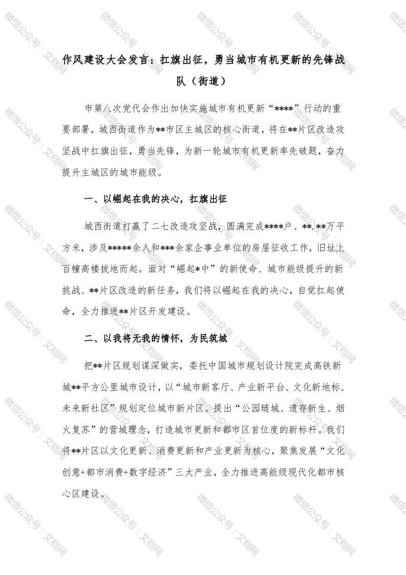 作风建设大会发言:扛旗出征,勇当城市有机更新的先锋战队(街道)