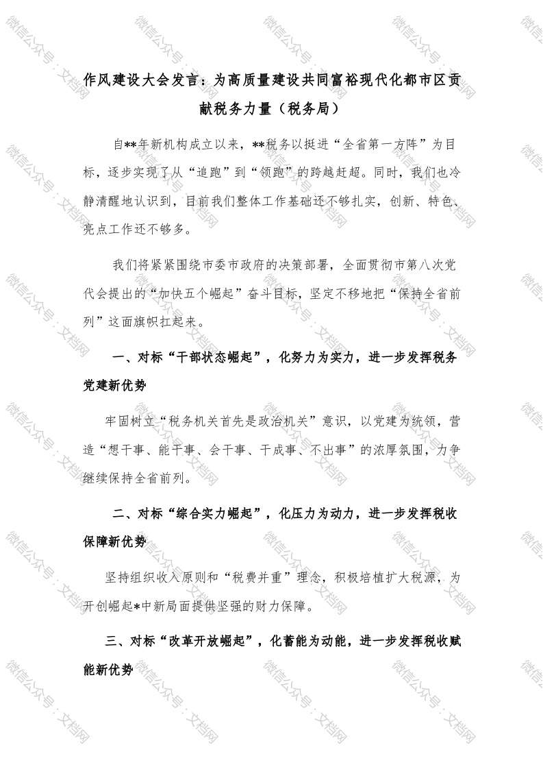 作风建设大会发言:为高质量建设共同富裕现代化都市区贡献税务力量(税务局)