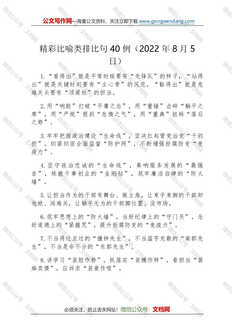 首页每日金句精彩比喻类排比句40例(2022年8月5日)