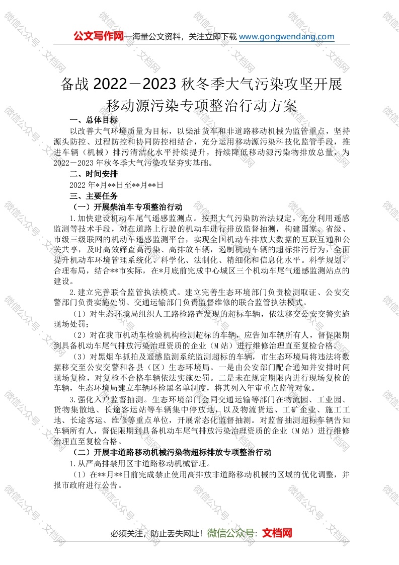 首页讲课讲稿备战2022-2023秋冬季大气污染攻坚开展移动源污染专项整治行动方案