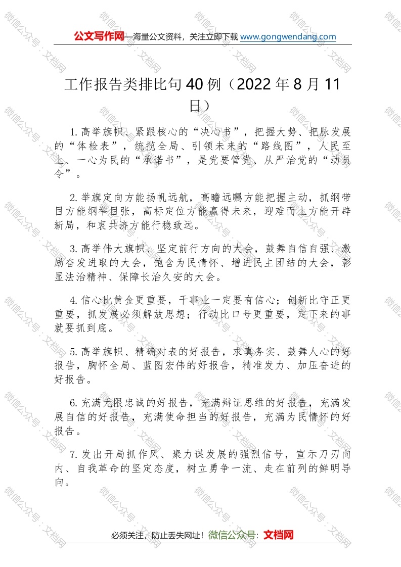 首页每日金句工作报告类排比句40例(2022年8月11日)