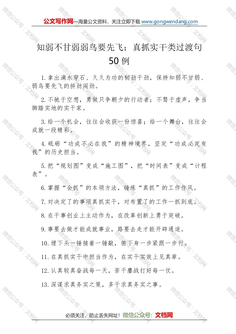 知弱不甘弱弱鸟要先飞:真抓实干类过渡句50例