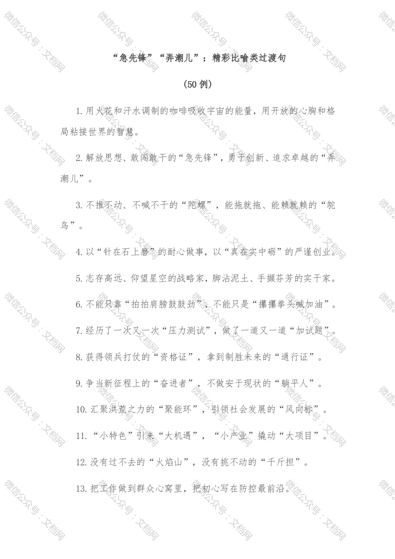 (50例)“急先锋”“弄潮儿”:精彩比喻类过渡句