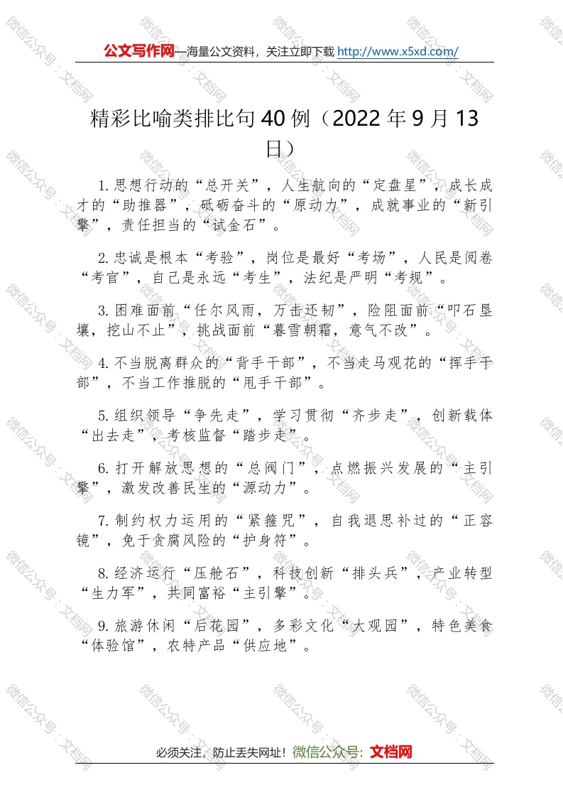 首页每日金句精彩比喻类排比句40例(2022年9月13日)
