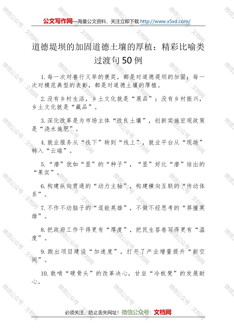 道德堤坝的加固道德土壤的厚植:精彩比喻类过渡句50例