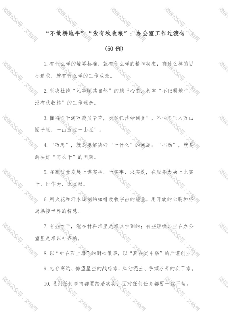 (50例)“不做耕地牛”“没有秋收粮”:办公室工作过渡句