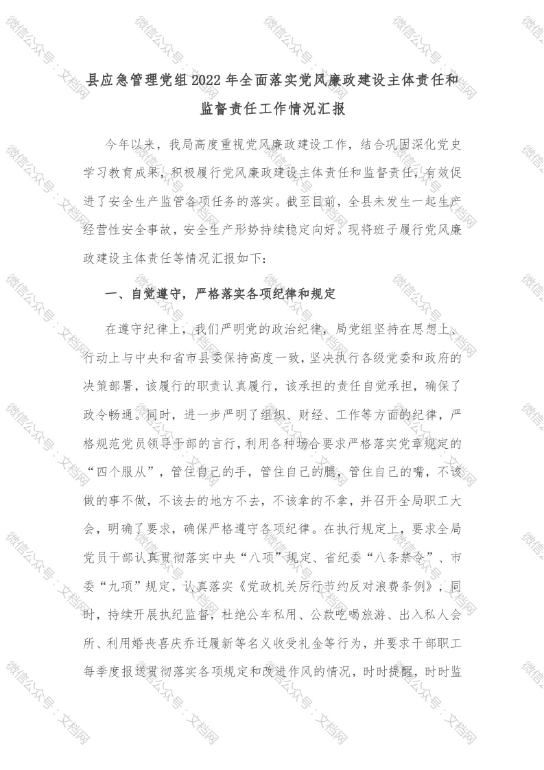 - 应急管理党组全面落实党风廉政建设主体责任和监督责任工作情况汇报