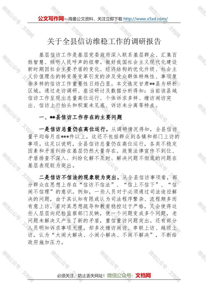 首页讲课讲稿关于全县信访维稳工作的调研报告