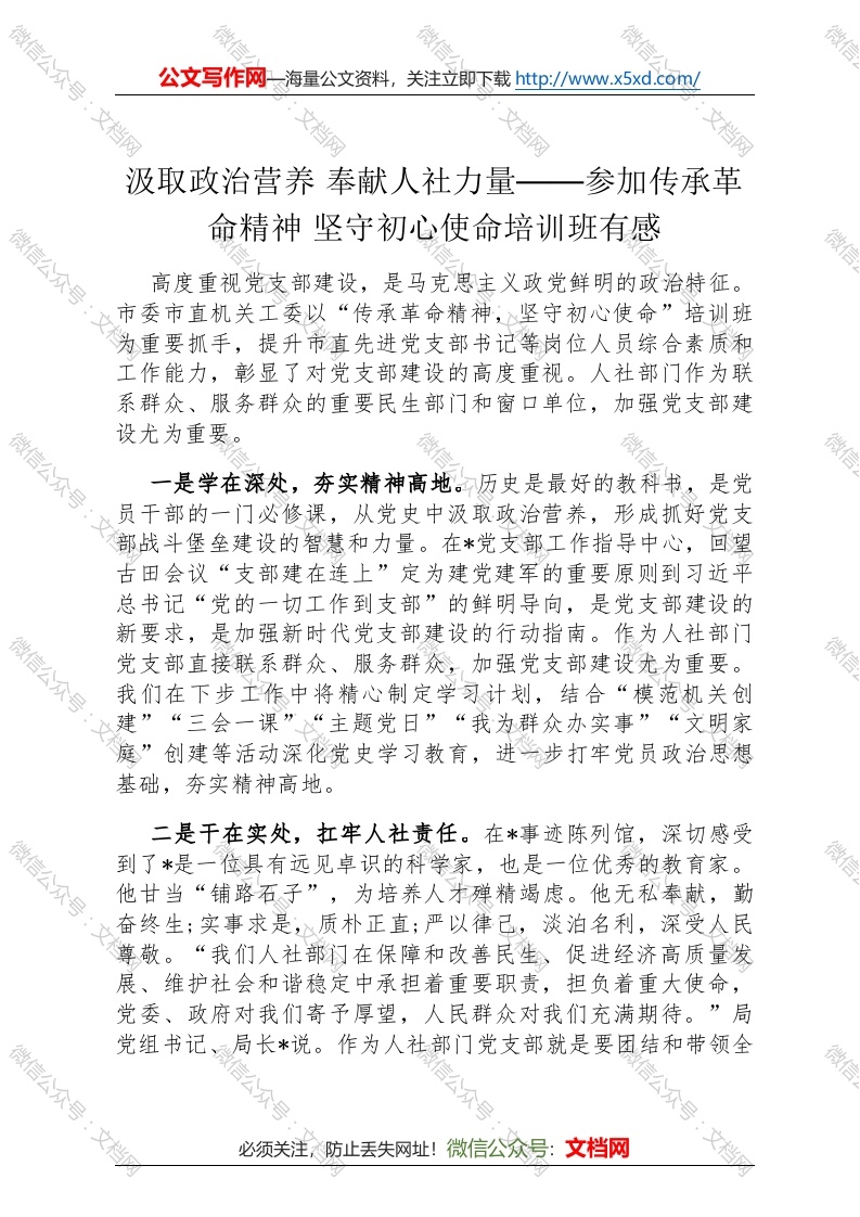 汲取政治营养 奉献人社力量——参加传承革命精神 坚守初心使命培训班有感