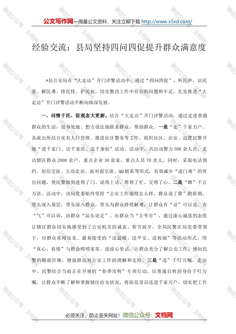 首页讲课讲稿经验交流:县局坚持四问四促提升群众满意度