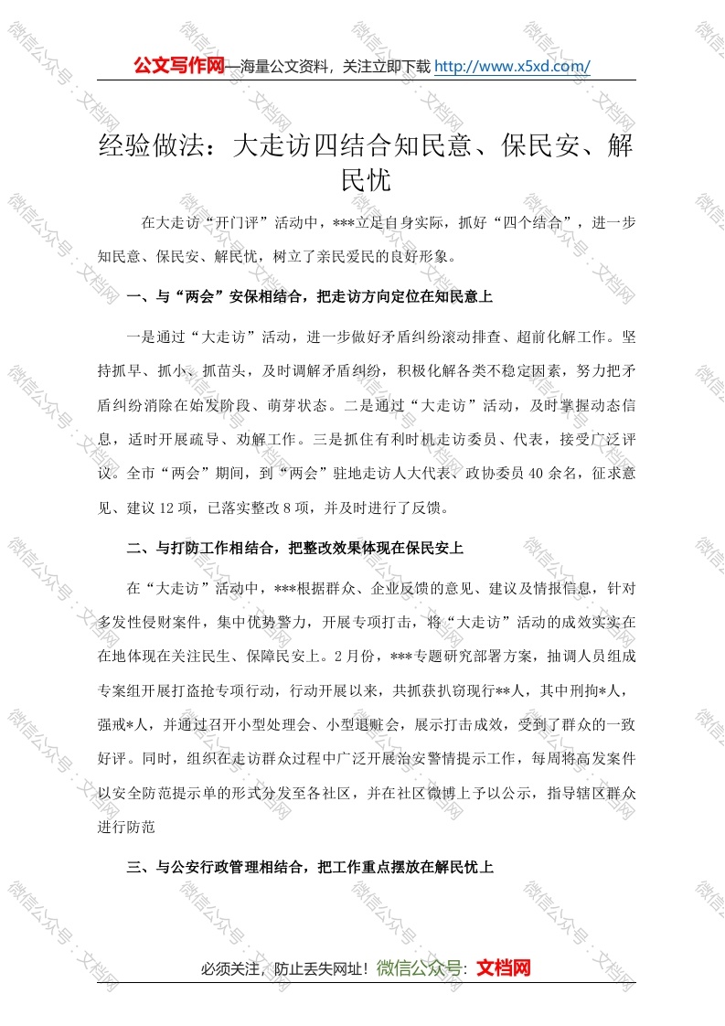 首页讲课讲稿经验做法:大走访四结合知民意、保民安、解民忧