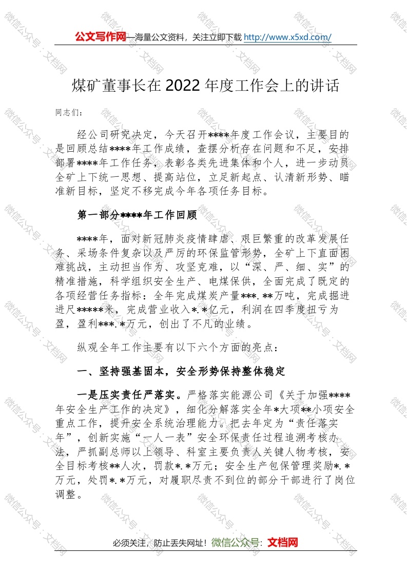 首页讲课讲稿煤矿董事长在2022年度工作会上的讲话