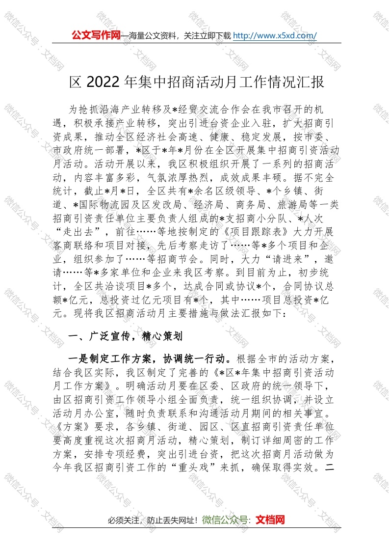 首页讲课讲稿区2022年集中招商活动月工作情况汇报