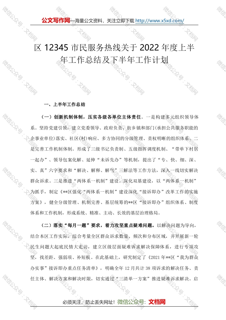首页讲课讲稿区12345市民服务热线关于2022年度上半年工作总结及下半年工作计划