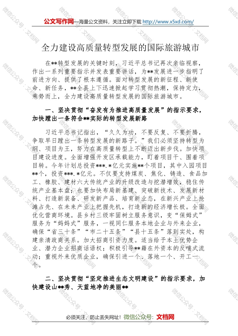 首页讲课讲稿全力建设高质量转型发展的国际旅游城市
