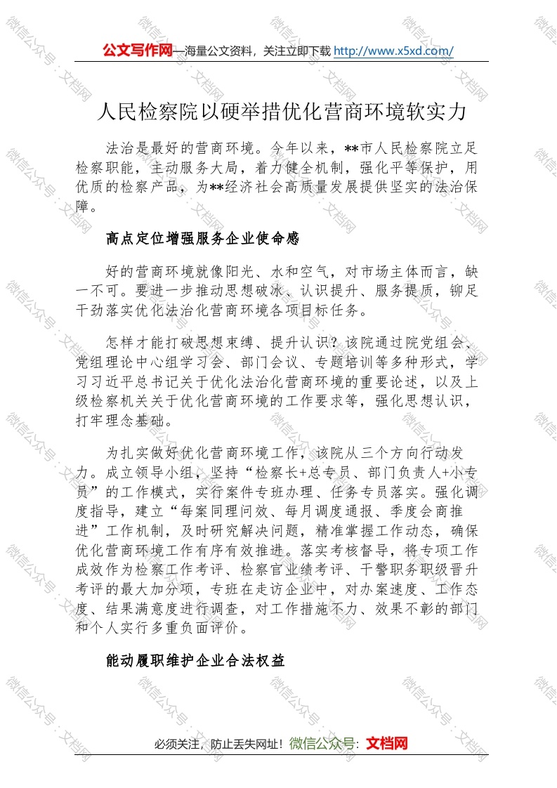 首页讲课讲稿人民检察院以硬举措优化营商环境软实力