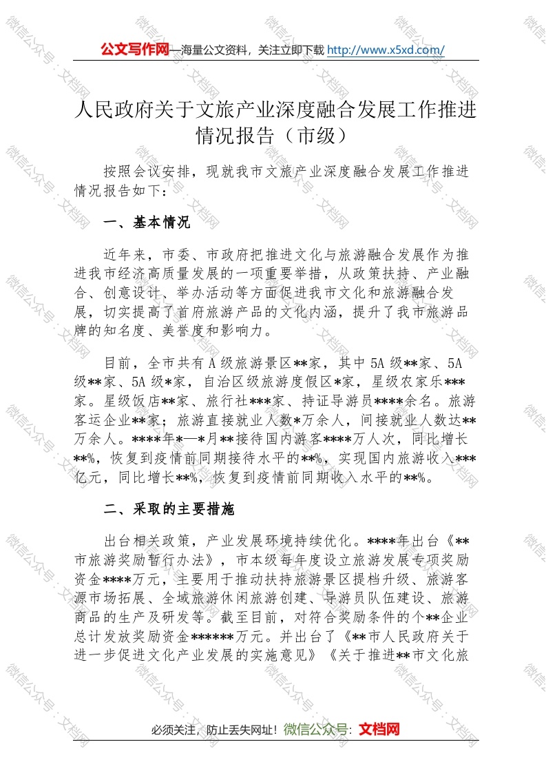 首页讲课讲稿人民政府关于文旅产业深度融合发展工作推进情况报告(市级)
