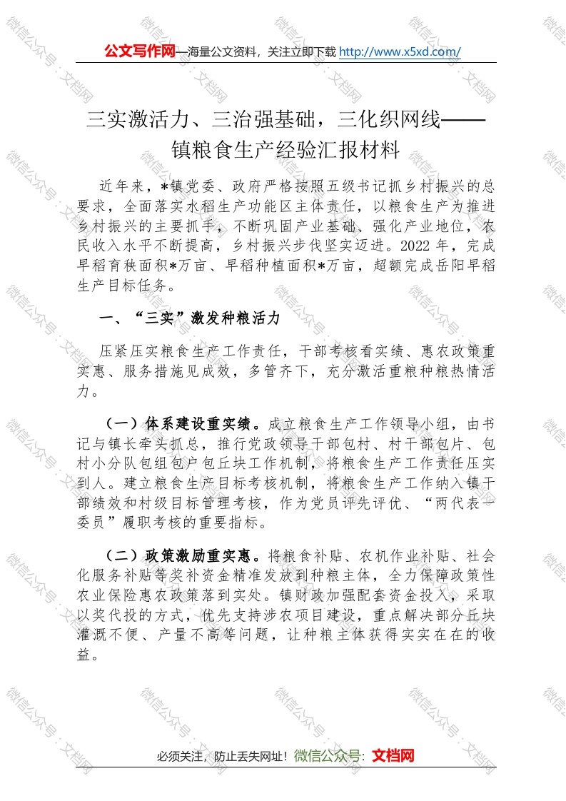 三实激活力、三治强基础,三化织网线——镇粮食生产经验汇报材料