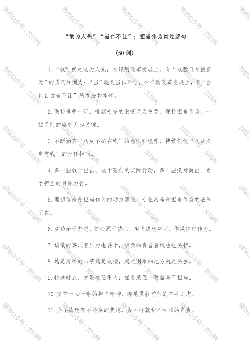(50例)“敢为人先”“当仁不让”:担当作为类过渡句