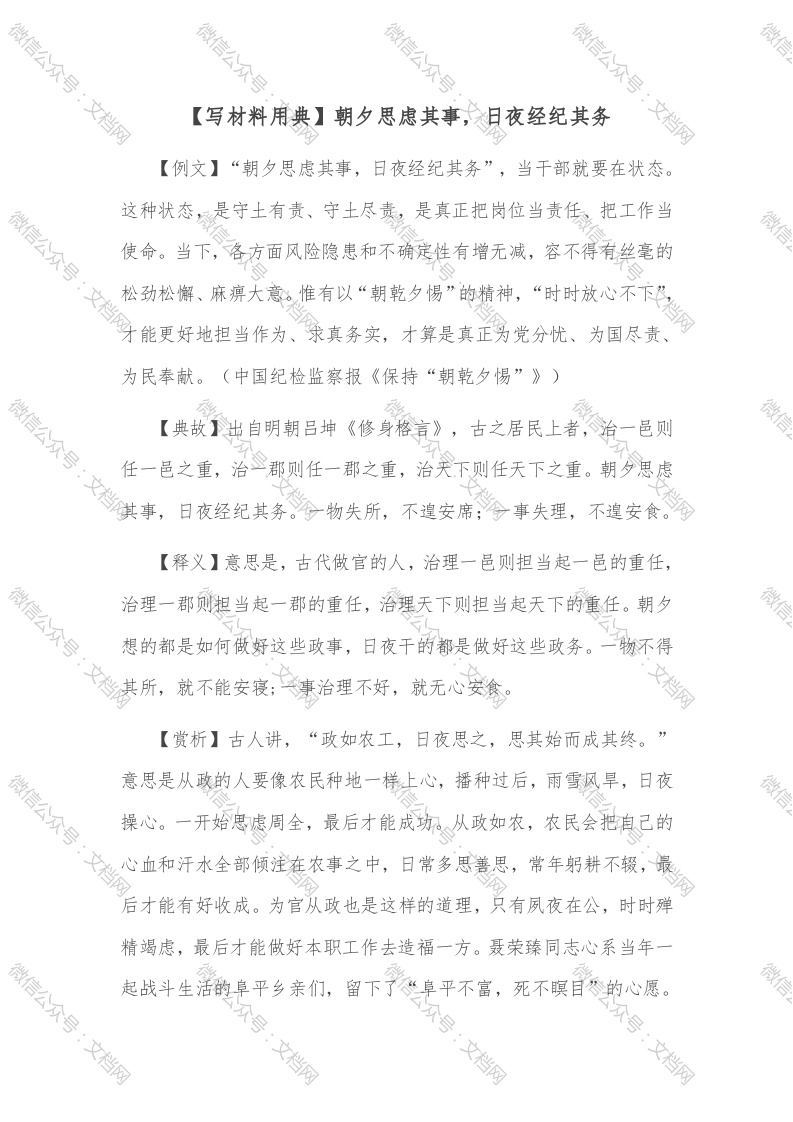 【写材料用典】朝夕思虑其事,日夜经纪其务