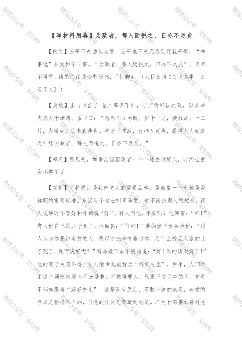 【写材料用典】为政者,每人而悦之,日亦不足矣