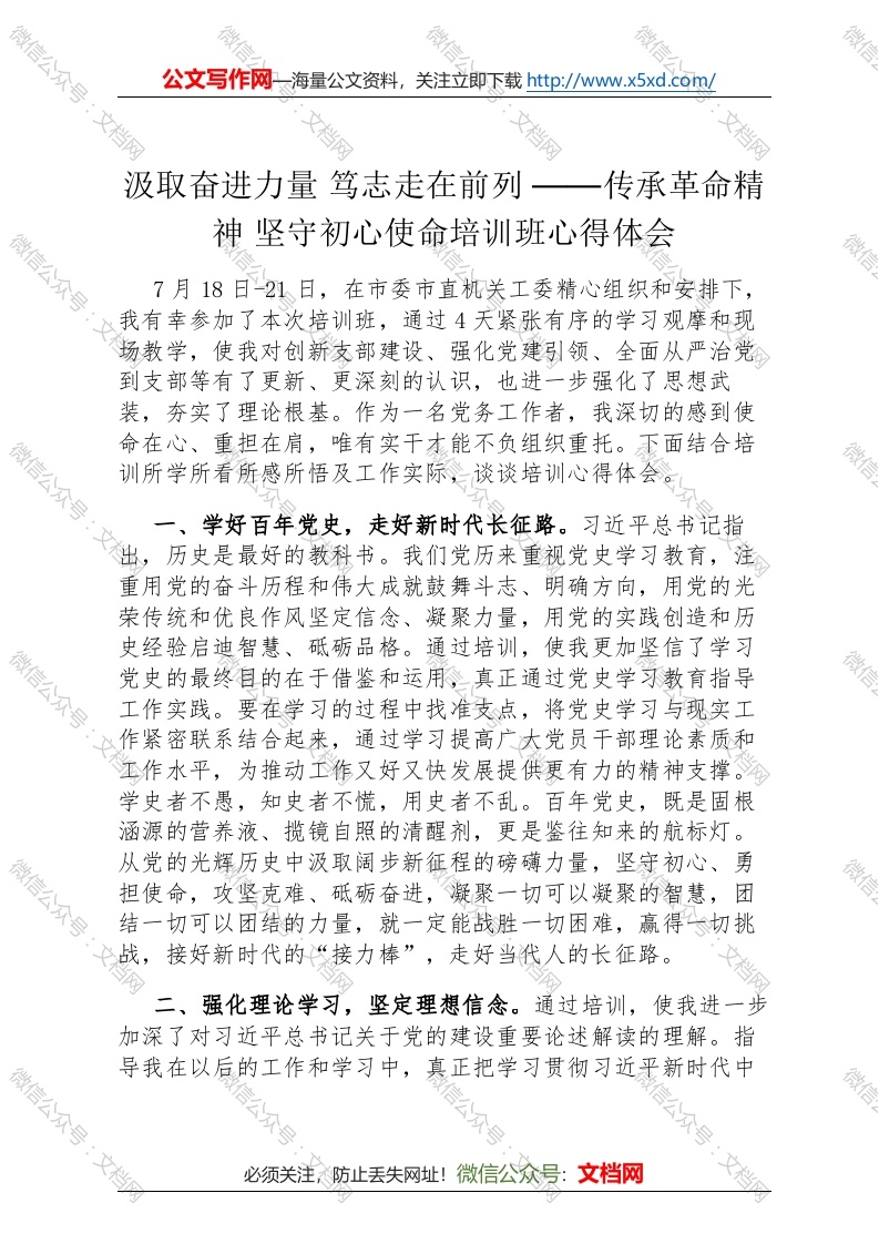 - 汲取精神力量 践行入党初心——参加传承革命精神 坚守初心使命培训班有感