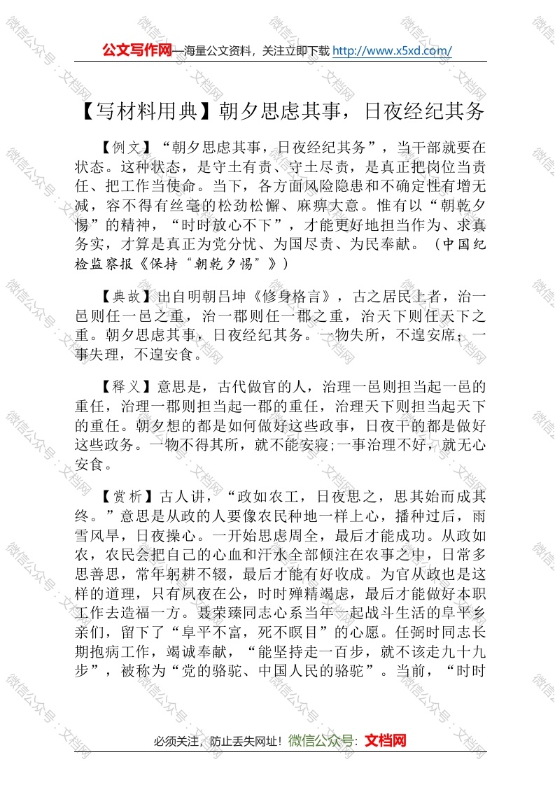 【写材料用典】朝夕思虑其事,日夜经纪其务