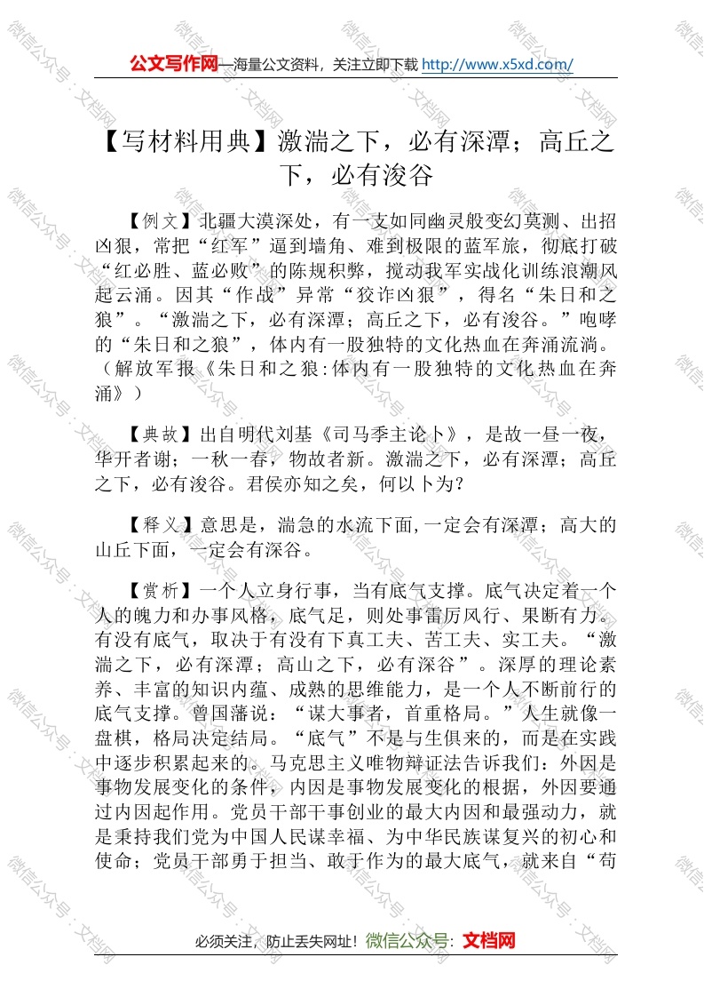 首页每日金句【写材料用典】激湍之下,必有深潭;高丘之下,必有浚谷