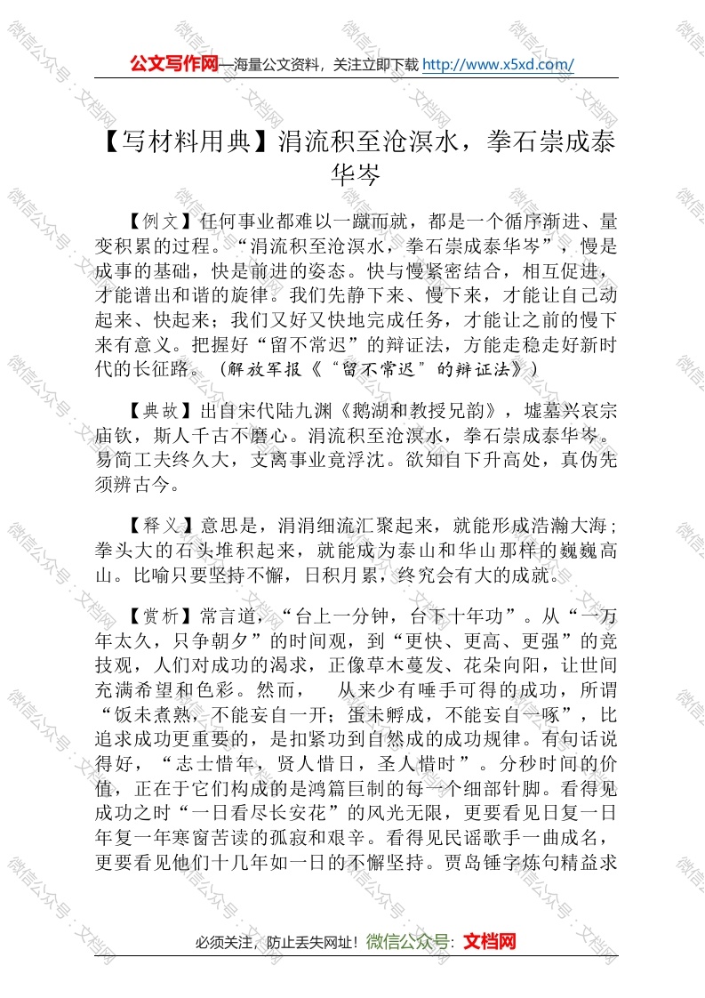 首页每日金句【写材料用典】涓流积至沧溟水,拳石崇成泰华岑