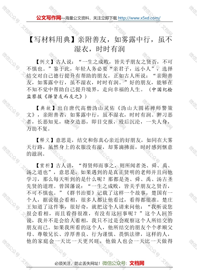 【写材料用典】亲附善友,如雾露中行,虽不湿衣,时时有润