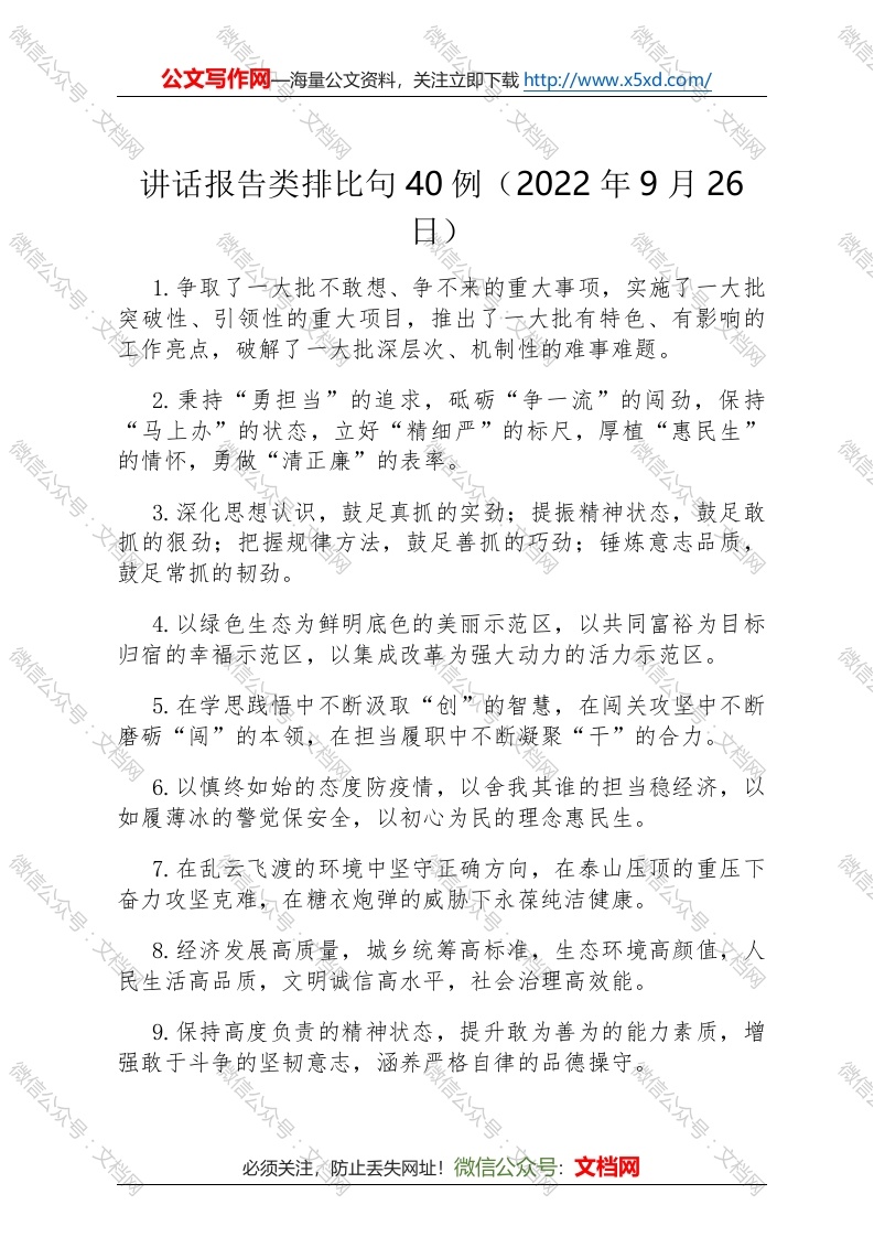 讲话报告类排比句40例(2022年9月26日)