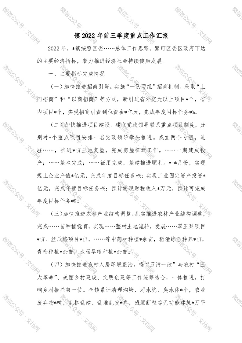 镇2022年前三季度重点工作汇报