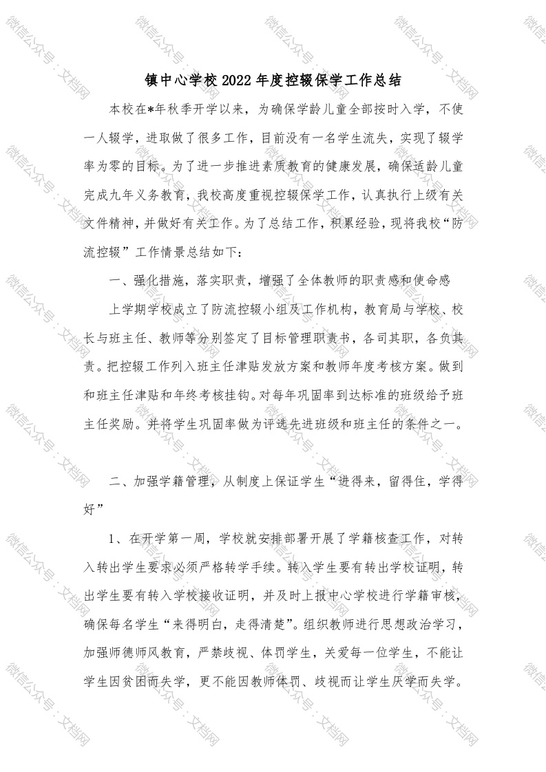 首页精选范文镇中心学校2022年度控辍保学工作总结