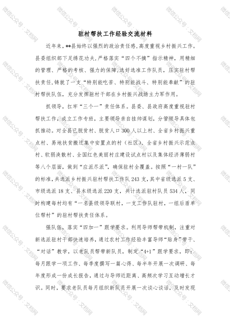 驻村帮扶工作经验交流材料