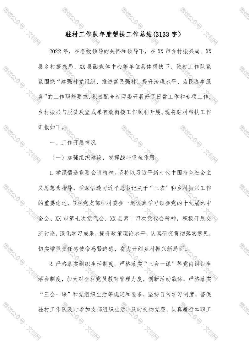 驻村工作队年度帮扶工作总结