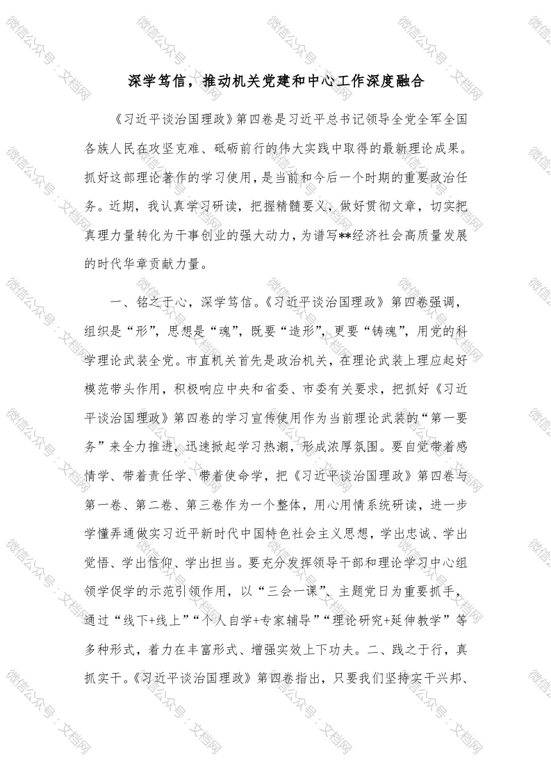 首页精选范文深学笃信,推动机关党建和中心工作深度融合