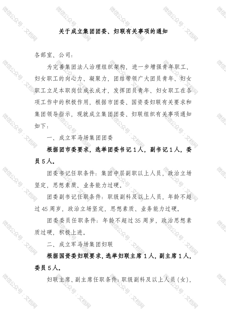 关于成立集团团委、妇联有关事项的通知