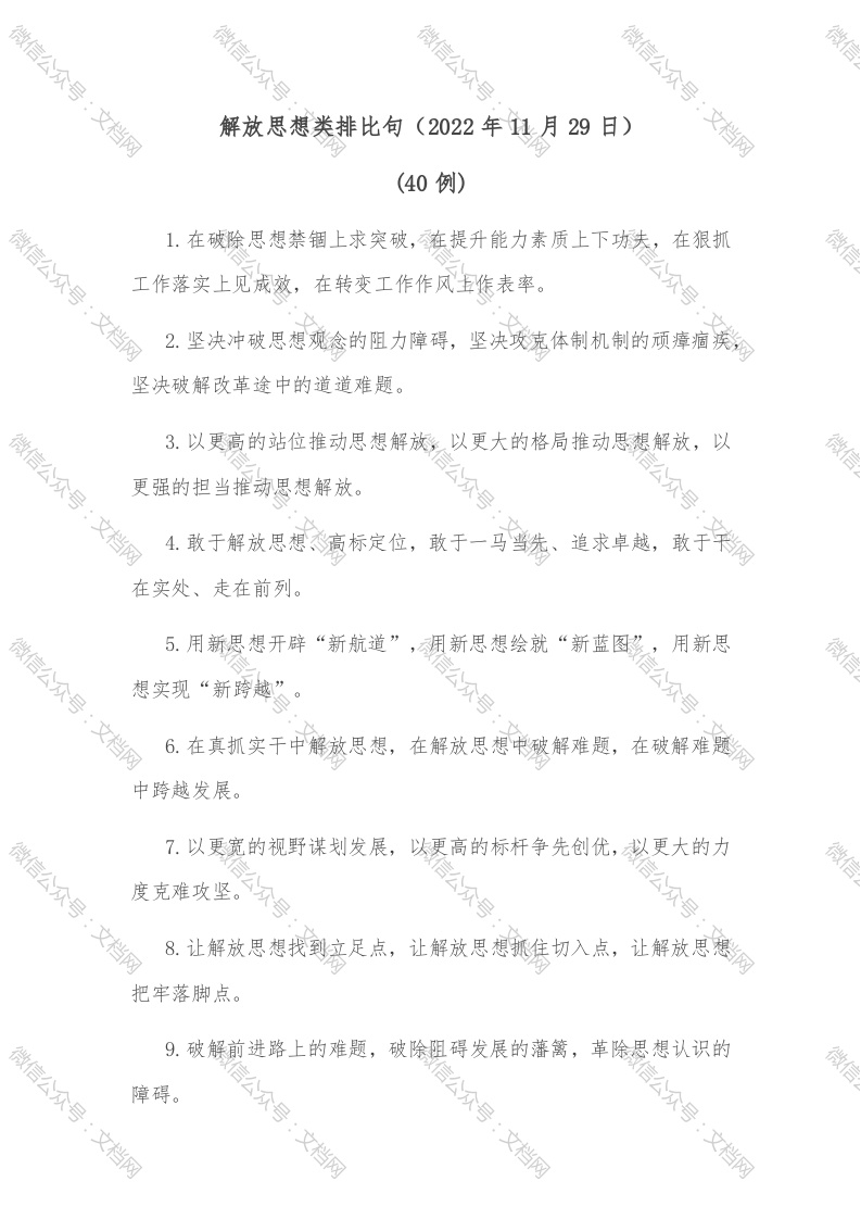 (40例)解放思想类排比句(2022年11月29日)