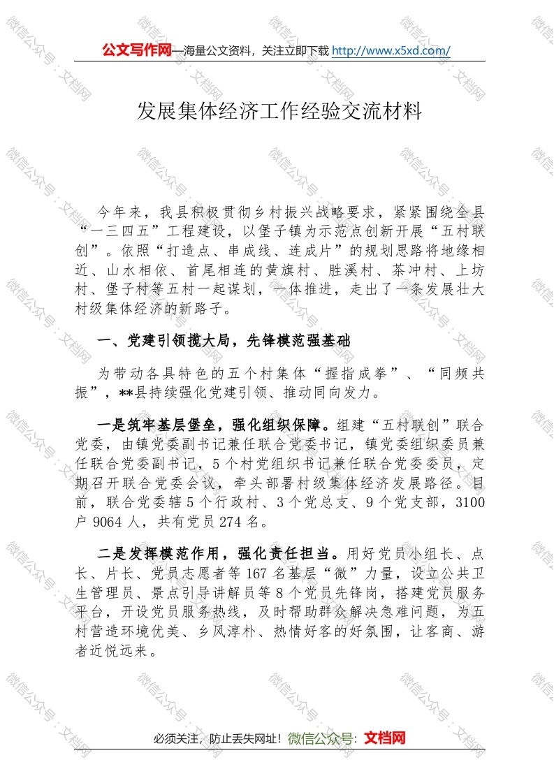 发展集体经济工作经验交流材料